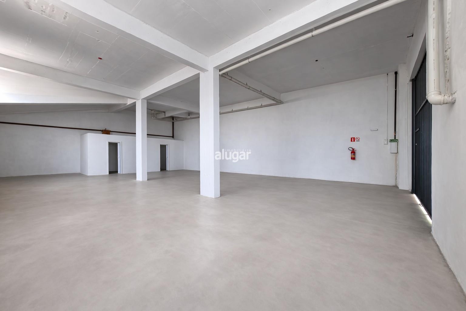 Pavilhão para alugar no bairro Sagrada Família, com parte térrea, pé direito de 6 metros, dois banheiros, portão eletrônico e grade de segurança.
